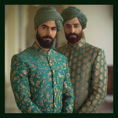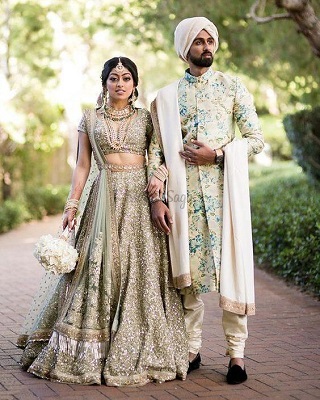 The groom typically wears a long jacket – called a Sherwani – over fitted trousers known as Churidas. Usually they are worn in a color complimentary to the bride – gold or white are common choices. His loafers, called Mojari, are typically leather and must be removed before entering the mandap. This, combined with the fact that it is the most important day of their life, is the reason why both of them spend a lot of time in planning their overall look for the wedding, paying full attention to the dress, shoes, accessories, and the like. In this article, we have listed the outfits that make up the perfect options for Indian groom attire. So, if you want to get some ideas on wedding dress for Indian groom, the following lines will serve your needs perfectly.