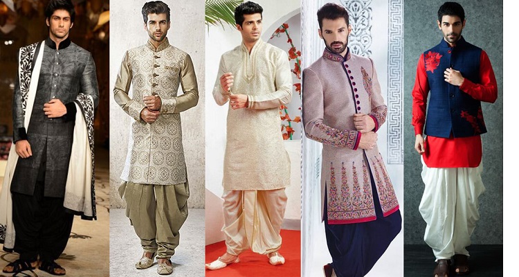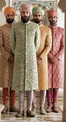 Amongst the popular wedding dresses for the Indian groom, one can always include the Jodhpuri suit. The perfect combination of Indian and western wear, for the groom, it is experiencing increasing popularity with the passing time. It usually comprises of a coat, which has a Nehru collar, is open in the front and has embroidery on the collar and front. It is teamed with trousers and can either have a shirt or a waistcoat underneath.