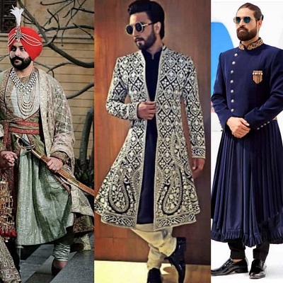Sherwani is another traditional Indian men's wear, which is quite similar to the achkan. However, it is worn over a kurta, is made of heavier fabric and is lined in the middle. It can be teamed with a churidar, khara pajama or even a shalwar, with mojri making the best-paired footwear. Sherwani has a Nehru-style collar.